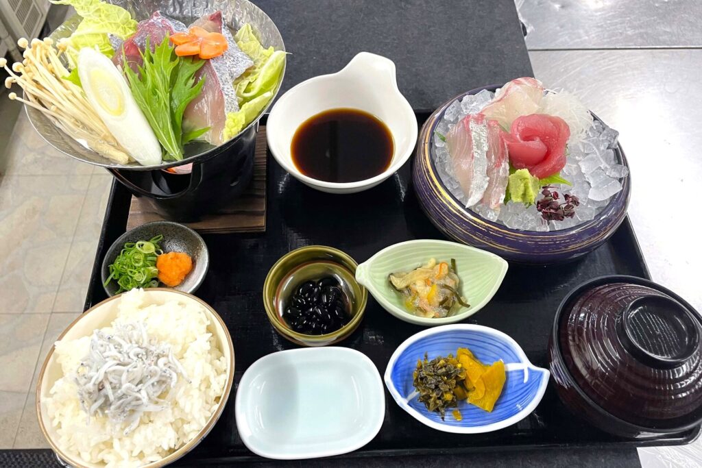 漁師直営の海鮮市場を中心とした複合施設です。ご昼食はその日に水揚げされた新鮮な魚介を使った「魚ちり御膳」をお召し上がりください。