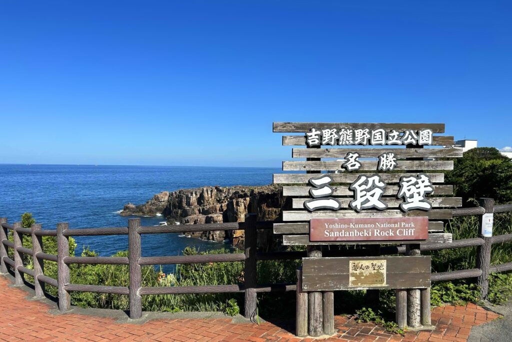 三段壁千畳敷の南海岸に位置する三段壁は、南北約2kmにわたり広がる高さ約50mの壮大な岩壁です。三段壁に打ち寄せる波しぶきは圧巻で、迫力ある光景を楽しむことができるスポットです。