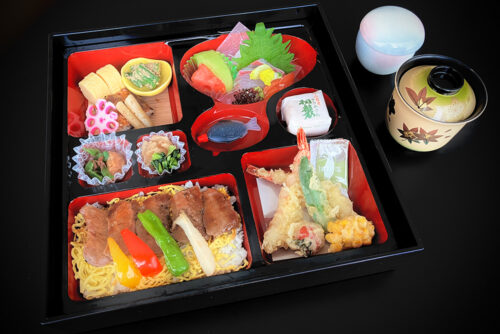 ・季節の和え物 ・お刺身 ・牛ステーキ重