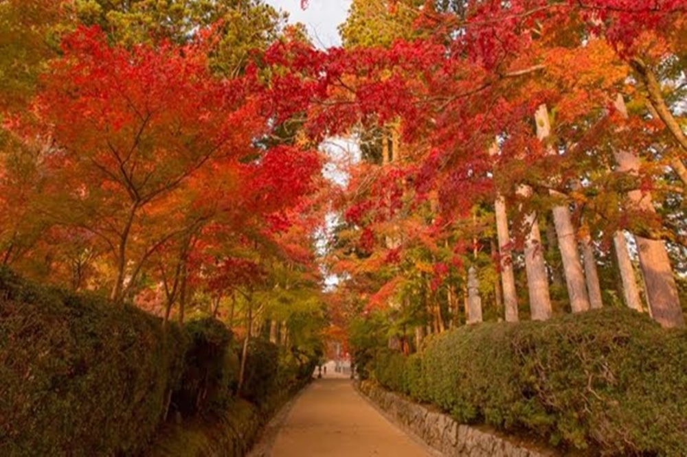 じゃばら道は金剛峯寺から壇上伽藍の東塔へと続く小径です。車は通れませんのでゆったりと紅葉をお楽しみいただけます。