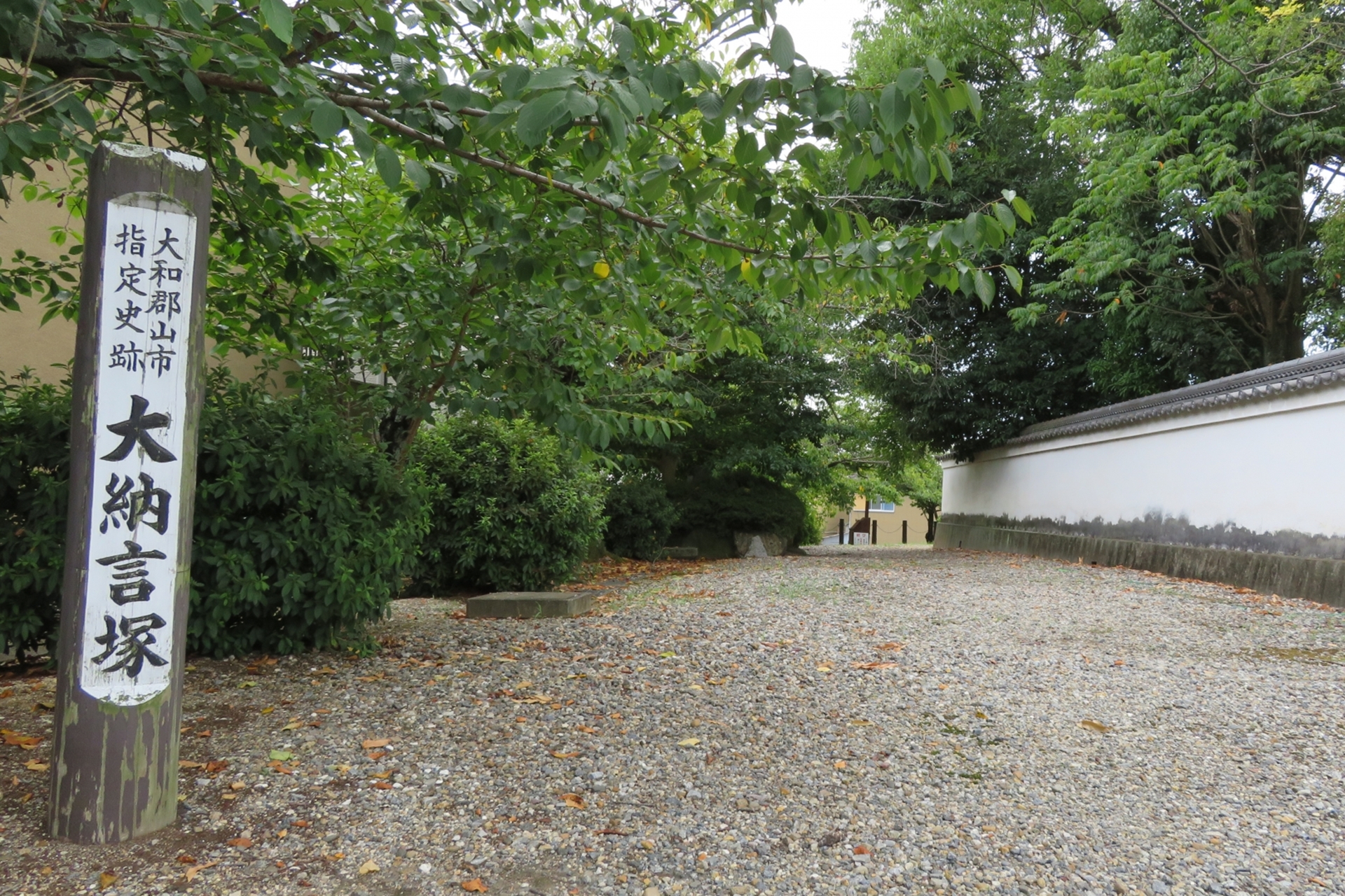 豊臣秀吉の弟、大和郡山百万石の城主、大納言豊臣秀長の墓所。1591年に郡山城内で没した秀長はここに葬られました。春岳院の僧が郡山町中と協力して外回りの土塀をつくり、五輪塔を建立しました。五輪塔は高さ2mで、地輪の表面には戒名が刻まれています。